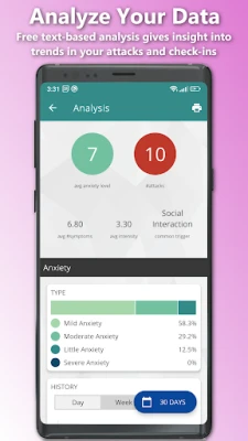 Utilize powerful analysis tools to evaluate your anxiety, gratitude, panic attack occurrences, and medication usage. Gain valuable insights for more effective mental health management.