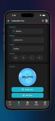 • Add unlimited discs and bags to your inventory
