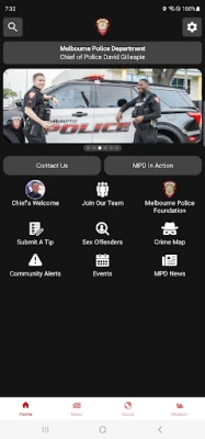 The Melbourne (FL) Police Department mobile application is an interactive app which will help improve our communication with the citizens of Melbourne and surrounding area. The purpose of this app is to improve our ability to communicate with our citizens. Information will include, but not be limited to Crime Mapping, Recruiting Information, Wanted Persons, and more. Citizens may submit a crime tip directly through the app, as well as see and share social media posts. By empowering people through technology, the Melbourne Police Department will be able to better protect our city. This app is not meant to be used to report emergency situations. If you have an emergency, please call 911.