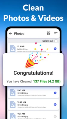 Having trouble clearing up space on your device? Phone Storage Cleaner helps you review and delete unwanted files. This app allows you to scan your photos, videos, documents, and downloads, enabling you to select and delete them.