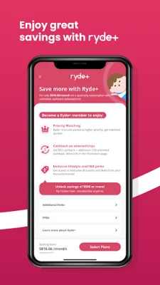 Join Ryde+ subscription plan for as low as $16.66 per month to unlock a world of benefits including priority matching, cashback, exclusive lifestyle perks and so much more!