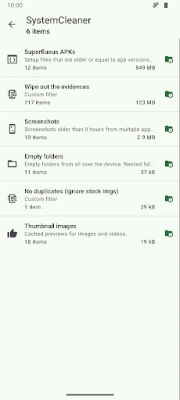 Filter for empty folders, temporary files, already installed apps and more. You can even create your own search criteria. The "SystemCleaner" tool allows you to automatically search your device and delete files based on various criteria.